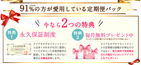 公式サイトから定期便を購入すれば永久返金保証の対象になるので、まずは一度試してみて下さい。いつまでもワキガに悩んでいる必要はありません。ワキガクリームで人生を変えましょう!